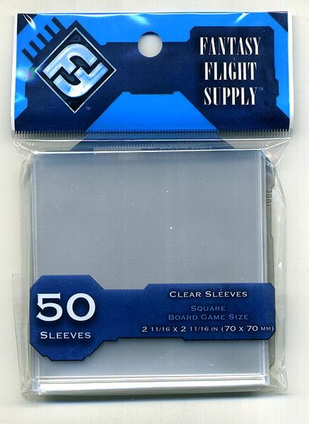 Todas las fundas para juegos de tablero de la línea Accesorios Fantasy Flight se presentan en paquetes de 50 unidades y están fabricados en polipropileno plástico transparente, sin ácido, sin PVC, y de 100 micras de grosor. Esto significan que son fundas duraderas, difíciles de romper o arrugar y totalmente libre de productos químicos que puedan corroer las cartas enfundadas. Estas fundas también están diseñadas para encajar con exactitud, para un cómodo barajado y manipulado.