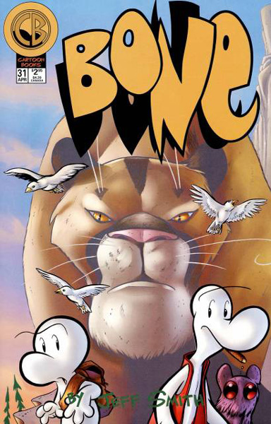 Bone is a story about three cousins who get run out of Boneville. Shortly after leaving the town they are separated and each find their way into a valley, where they meet many strange creatures. The comic follows the adventures they get involved in as they try to make it back to Boneville.