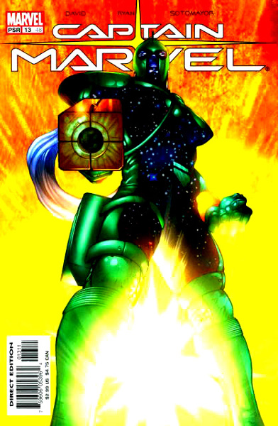 This is Captain Marvel volume 4; though it is actually a relaunch of Captain Marvel vol 3 (the continued numbering of volume 3 is even visible next to the volume 4 numbering). The series was relaunched to participate in Marvel's 'U Decide' event which was a contest between this series, Bill Jemas' comic-series 'Mar-Ville' and Bill Roseman's 'Ultimate Adventures featuring Owl Man'. The winner would be granted his own series. Captain Marvel came out as winner of the contest and continued to be published after it's initial 6 issues. This volume continues the adventures of Genis-Vell bonded to Rick Jones; all chronicled by Peter David; all of which is carrying over from volume 3, along with artist Chriscross who remains the illustrator for the first portion of the series.