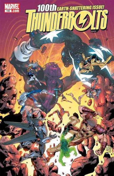 "No one ever said being good would be easy". The much acclaimed saga of Marvel villains becoming heroes continues! After 81 issues of the first series of Thunderbolts (1997), the series took a brief hiatus. One year later, the series returned in the form of New Thunderbolts with a new number 1, although the original numbering is also visible, making that issue 82 - 99 of the Thunderbolts series. The series returned to it's original numbering and name with issue 100.