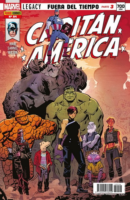 Quadern d'historietes grapat de 40 pàgines interiors en color més cobertes que conté la traducció del comic book original Captain America Volume 1 nombre 700 publicat a USA per Marvel Comics.Un còmic pertanyent a Marvel Legacy. "Fora del temps", part 3. 'L'arribada de l'històric Captain America # 70...