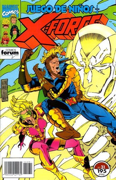 Quadern d'historietes grapat de 32 pàgines interiors en color més cobertes que conté la traducció del còmic book original X-Force volume 1 número 32 publicat als EUA per Marvel Comics. Col.lecció de 42 volums.