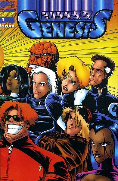 Quadern d'historietes grapat de 40 pàgines interiors en color més cobertes que tradueix el còmic book original 2.099 AD Genesis publicat per Marvel Comics al gener de 1996.