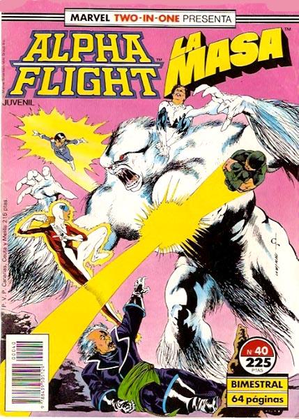 Alpha Flight és una sèrie creada per John Byrne que la va portar endavant en solitari durant els primers 27 números americans, a Espanya va ser publicada en comic books de 32 pàgines fins al número 34 en què va passar a tenir 64 pàgines ia compartir capçalera amb La Masa i passant la periodicitat a bimestral.