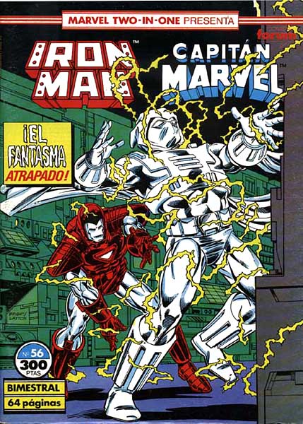 Quadern d´historietes grapat de 64 pàgines interiors en color més cobertes que conté la traducció dels comic books Iron Man volum 1 números 221 i 222 i Captain Marvel 32 publicats als EUA entre agost i setembre de 1987 i maig de 1974 respectivament per Marvel Comics. Sèrie de 58 volums.