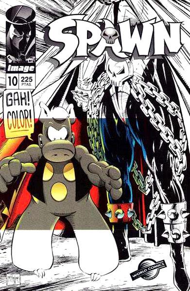 Quadern d'historietes grapat de 24 pàgines interiors en color més cobertes que conté la traducció del còmic book original Spawn Volum 1 número 10 publicat als EUA per Image Comics. Sèrie de 94 volums.