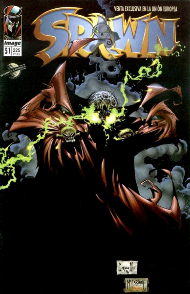 Quadern d'historietes grapat de 24 pàgines interiors en color més cobertes que conté la traducció del còmic book original Spawn Volum 1 número 54 publicat als EUA per Image Comics. Sèrie de 94 volums.