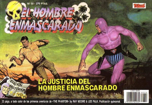 Revista d'historieta grapades de 32 pàgines interiors en color més cobertes que conté la traducció de les pàgines dominicals i les tires diàries de la sèrie americana The Phantom publicades als EUA per King Features Syndicate editada el 1988 a Espanya per Ediciones B dins del seu segell Tebeos SA Col·lecció de 74 volums.