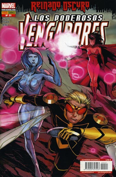 Quadern d'historietes grapat de 40 pàgines interiors en color més cobertes que conté la traducció del còmic book original The Mighty Avengers número 21 publicat als EUA per Marvel Comics. Sèrie de 36 volums.