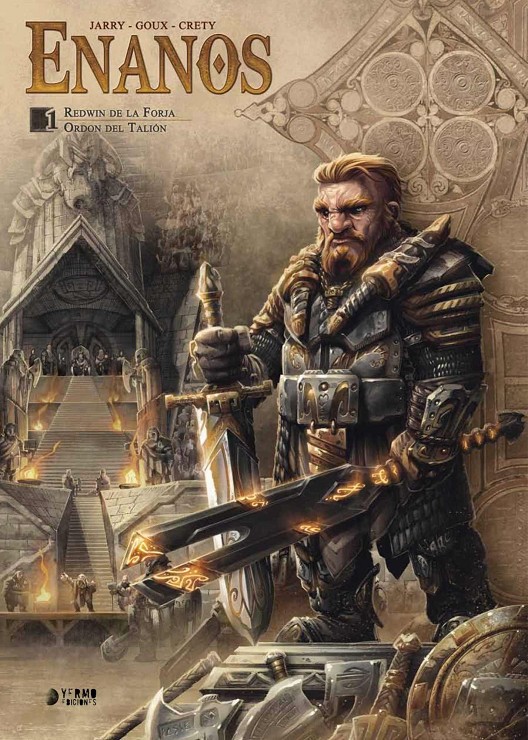 Llibre d'historietes enquadernat en cartoné de 120 pàgines interiors en color més cobertes que conté la traducció dels llibres originals Nains 1. Redwin de la Forge i 2. Ordo du Talion publicats per Soleil Productions en 2015 per al mercat francobelga. Serie de 12 volumns