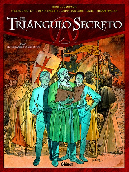 Llibre d'historietes enquadernat en cartoné de 48 pàgines interiors en color més cobertes que conté la traducció de l'llibres original Le Triangle secret 1. Le testament du fou publicat per Glénat en 2000 per al mercat francobelga. Sèrie de 7 volums.