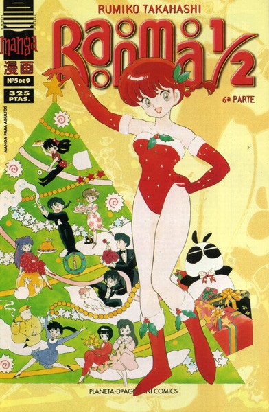 Llibre d'historietes d'estil manga i de gènere shonen (orientat al públic juvenil) enquadernat en rústica de 48 pàgines interiors en blanc i negre més cobertes en color i sentit de lectura occidental. Sèrie de 9 volums.La història tracta sobre un noi anomenat Ranma Saotome que pateix una peculiar ma...