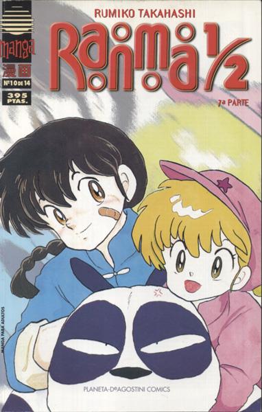 Llibre d'historietes d'estil manga i de gènere shonen (orientat al públic juvenil) enquadernat en rústica de 48 pàgines interiors en blanc i negre més cobertes en color i sentit de lectura occidental. Sèrie de 14 volums.La història tracta sobre un noi anomenat Ranma Saotome que pateix una peculiar m...