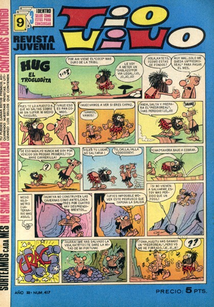 Revista d'historietes d'humor grapada de 68 pàgines interiors en color i bitò més cobertes en color que conté una antologia d'historietes del gènere d'humor i aventura combinant els millors autors nacionals de l'època. Col·lecció de 1043 números ordinaris