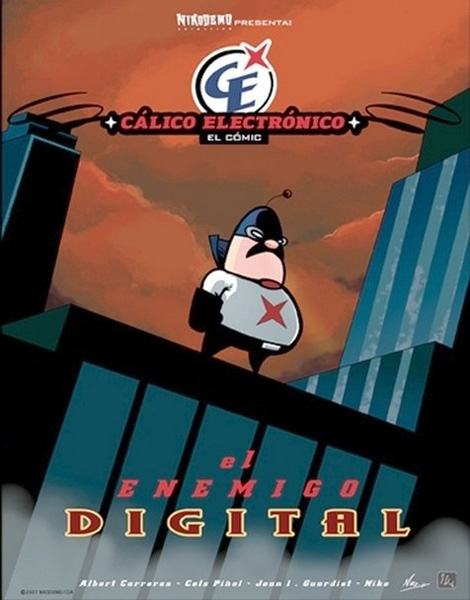 Llibre d'historietes enquadernat en cartoné en format àlbum de 48 pàgines interiors en color que conté les aventures d'un superheroi paròdic protagonista d'una sèrie d'animació flash nascuda per a la seva difusió a internet anomenat Cálico Electrònic. Sèrie de 6 volums.