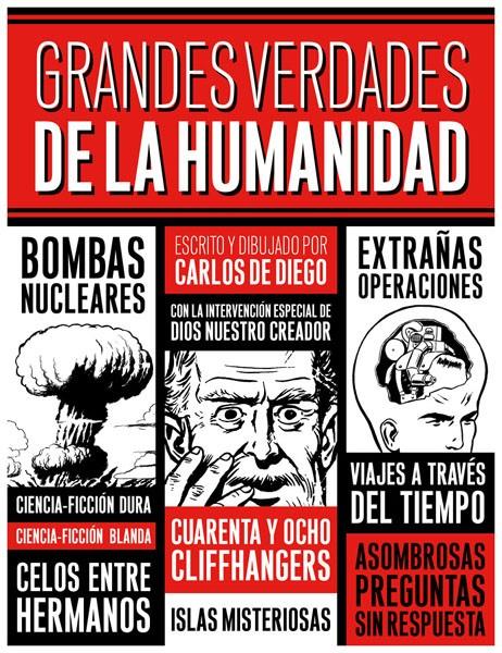 Grans veritats de la humanitat comença com les millors històries de Carlos de Diego, de forma completament anecdòtica: amb una assistenta comprant un entrepà de pernil i formatge per al seu cap. A partir d'aquí el relat dóna pas a un entramat de secrets familiars, estranyes operacions, illes misterioses i tot discussions amb Déu, una història d'aventures completa i inèdita que publicarem d'aquí a poques setmanes en un àlbum de 56 pàgines de gran format, amb pròleg de Jordi Costa i uns continguts extres que pràcticament conformen una altra història a part.
