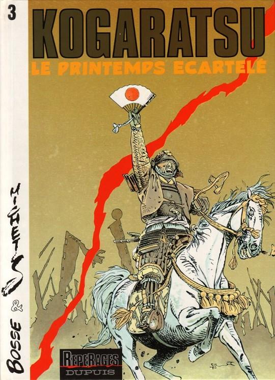 Llibre d'historietes enquadernat en cartoné en format àlbum de 48 pàgines interiors en color més cobertes que conté l'original Kogaratsu 3. Le printemps écartelé publicat en 1988 per Dupuis per al mercat francobelga. Aquest àlbum és l'edició original en francès.