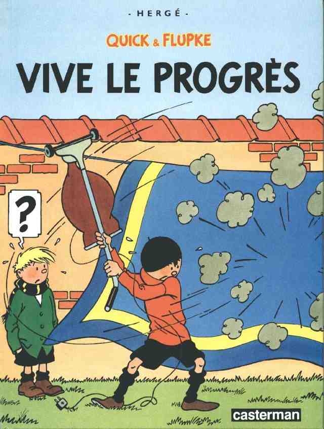 Créée par Hergé, "Quick et Flupke" est une série d’albums de bande dessinée belge. Sorti en septembre 1987, "Vive le progrès" est le huitième album de la série dernièrement éditée par Casterman. A l’origine, la sérié était publiée dans les pages du journal "Le petit Vingtième" à partir du 23 janvier 1930.