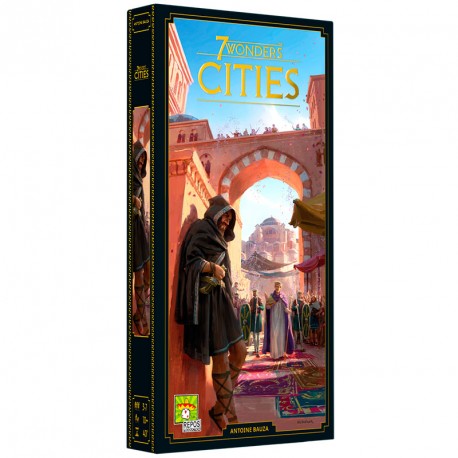 Lluny de la sumptuositat dels palaus, en els foscos carrerons, l'or canvia de mans, es comparteix informació, es forgen aliances i es traeixen secrets. Benvingut als baixos fons de la ciutat. Mercenaris, lladres, espies i diplomàtics afegiran una nova dimensió als teus Meravelles. A més, aquesta expansió afegeix El Khazneh, o Tresor de Petra i la Basílica de Santa Sofia a Bizanci a les Meravelles ja existents. 7 Wonders Cities et dóna l'oportunitat de conèixer un altre aspecte de les grans ciutats de l'Antiguitat. 27 noves cartes que t'ofereixen edificis nous amb efectes fins ara mai abans vists. 3 Gremis, 6 Líders i 2 Meravelles completen aquesta expansió. A més, permet incloure un 8è jugador i també ofereix una variant de joc per equips.