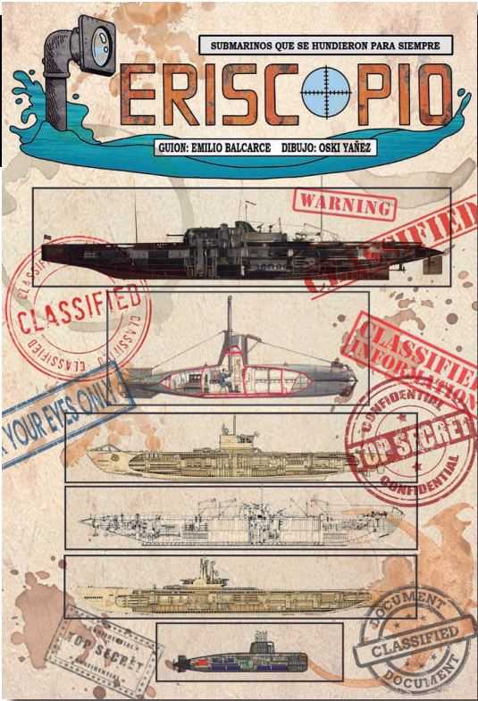 Periscopi recull diverses històries reals sobre submarins que van acabar enfonsats al fons del mar. Ofereix, a més, una àmplia visió de conjunt, ja que recorre des del primer submarí que va entrar en combat a la guerra de Secessió fins a algun cas recent. Així, coneixerem l'esdevenir del Surcouf, de l'Armada francesa, aleshores el submarí més gran del món, que portava un hidroavió al seu interior i que va tenir una història molt particular en quedar França com a territori ocupat durant la Segona Guerra Mundial. La història del submarí argentí Ara San Juan i de l'italià Macallé, els avatars del qual, encara separats per dècades, es dirien interconnectats, se'ns narra en paral·lel. Del front del Pacífic es rescaten diverses històries, com la dels cinc submarins nans nipons que van atacar Pearl Harbor o l'USS TANG SS306, un dels més actius de l'Armada nord-americana. No podia faltar el misteri de l'U-333, sobre el qual aquest còmic aporta tota la documentació coneguda. En suma, Periscopio ens mostra històries reals, sorprenents, amb tripulacions al límit, ratllant a l'heroisme, gràcies a la documentació d'un guionista tan experimentat com Emilio Balcarce ia la narrativa que desplega el dibuixant Oski Yañez; una invitació a submergir-se a la història.