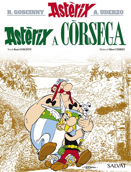 Llibre d'historietes enquadernat en cartoné de 48 pàgines interiors en color més cobertes que conté la traducció de l'original 20. Astèrix en Corse publicat per Dargaud en 1973 per al mercat francobelga.