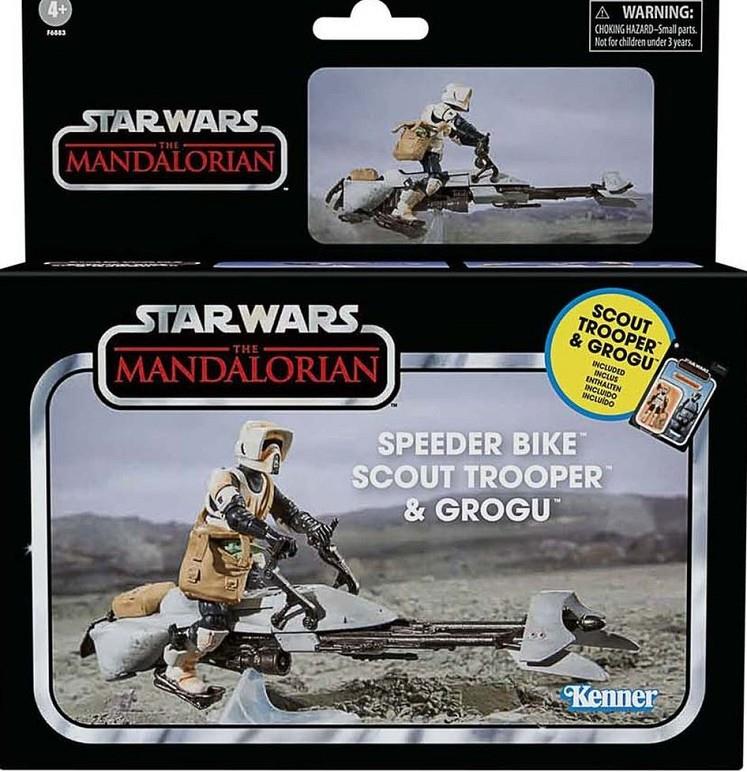 • SPEEDER BIKE SCOUT TROOPER & GROGU SET 2 FIG. 9,5 CM STAR WARS THE MANDALORIAN THE VINTAGE COLLECTION