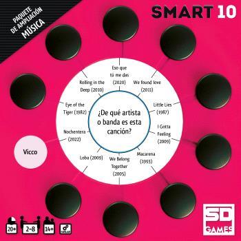 Conté 50 targetes de doble cara amb 100 preguntes noves i 1000 noves respostes. Les preguntes inclouen tots els aspectes relacionats amb la música: artistes, cançons, història... Reemplaceu les targetes de preguntes a la caixa Smart amb dos paquets d'ampliació temàtics o barregeu aquestes preguntes de música amb la meitat de les targetes originals. Per poder utilitzar aquestes preguntes cal tenir el joc la caixa Smart inclosa en qualsevol joc base de Smart10. Nota de l'editor: Ens encanta jugar amb un reproductor de música i recordar les cançons de les preguntes... encara que se'ns allarguin les partides cantant!