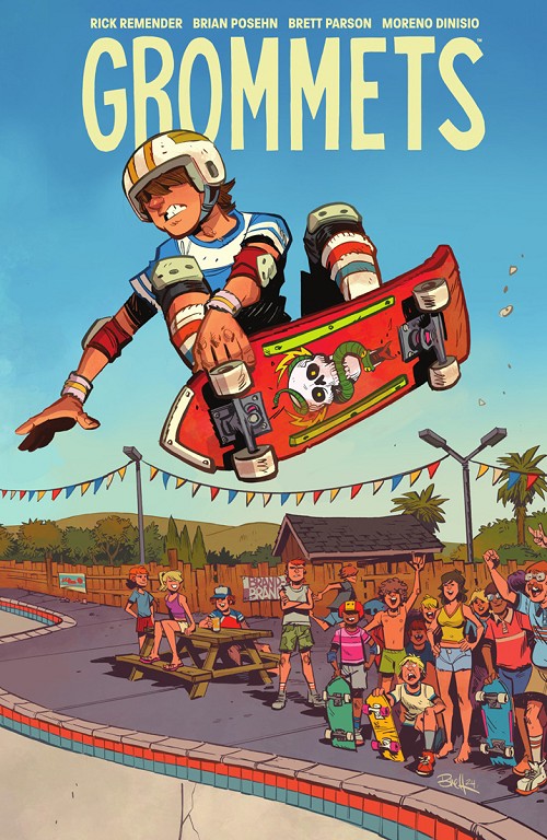 RICK REMENDER Y BRIAN POSEHN CREAN UNA DIVERTIDA HISTORIA LLENA DE NOSTALGIA A PARTIR DE SUS RECUERDOS COMO CHAVALES EN LA CALIFORNIA DEL SKATE Y EL PUNK DE LOS AÑOS 80. Grommets es una mirada genuina a la cultura del skate de los años 80: una instantánea de la generación que transformó el skateboarding en un fenómeno universal. Y, a la vez, es también una emocionante historia de iniciación que sigue la vida de dos jóvenes amigos con familias complicadas: sabremos cómo lidian ambos con sus traumas en una época en que la angustia de los adolescentes no le importaba a nadie.