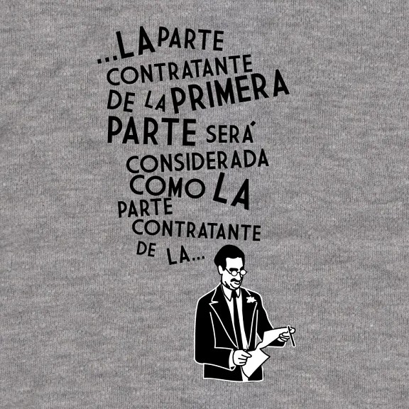- Pareu molta atenció a la primera clàusula, perquè és molt important. Diu: «»La part contractant de la primera part serà considerada com… la part contractant de la primera part. Què li sembla això? Està genial, eh?