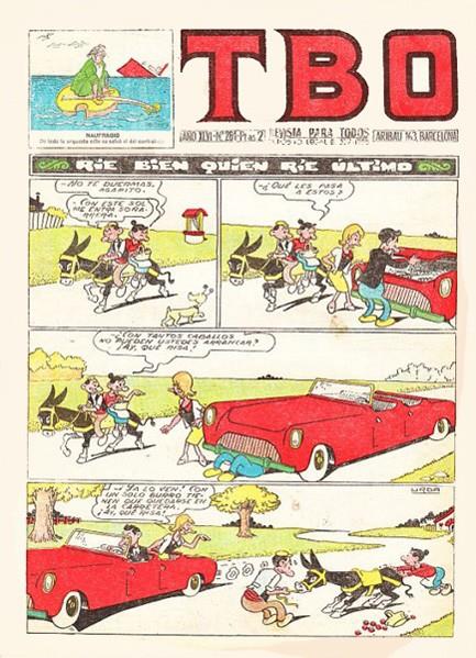 Revista d'historietes grapada de 16 pàgines interiors en blanc i negre i en color més cobertes en color que conté una selecció d'historietes d'autors espanyols. Serie de 789 volums i 69 números extraordinaris iniciada el 1952, que reprèn la capçalera TBO