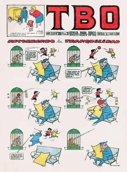 Revista d'historietes grapada de 16 pàgines interiors en blanc i negre i en color més cobertes en color que conté una selecció d'historietes d'autors espanyols. Serie de 789 volums i 69 números extraordinaris iniciada el 1952, que reprèn la capçalera TBO