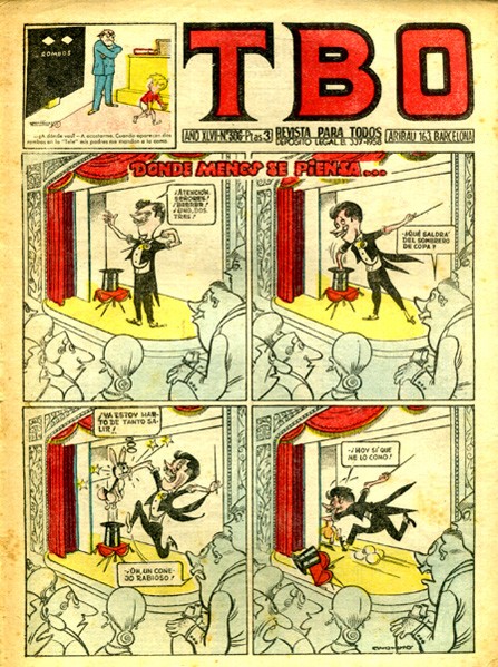 Revista d'historietes grapada de 16 pàgines interiors en blanc i negre i en color més cobertes en color que conté una selecció d'historietes d'autors espanyols. Serie de 789 volums i 69 números extraordinaris iniciada el 1952, que reprèn la capçalera TBO