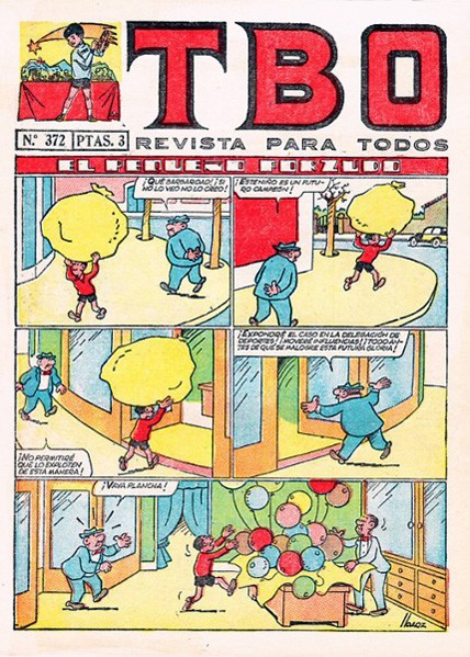 Revista d'historietes grapada de 16 pàgines interiors en blanc i negre i en color més cobertes en color que conté una selecció d'historietes d'autors espanyols. Serie de 789 volums i 69 números extraordinaris iniciada el 1952, que reprèn la capçalera TBO