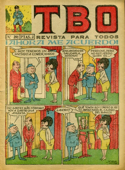 Revista d'historietes grapada de 16 pàgines interiors en blanc i negre i en color més cobertes en color que conté una selecció d'historietes d'autors espanyols. Serie de 789 volums i 69 números extraordinaris iniciada el 1952, que reprèn la capçalera TBO