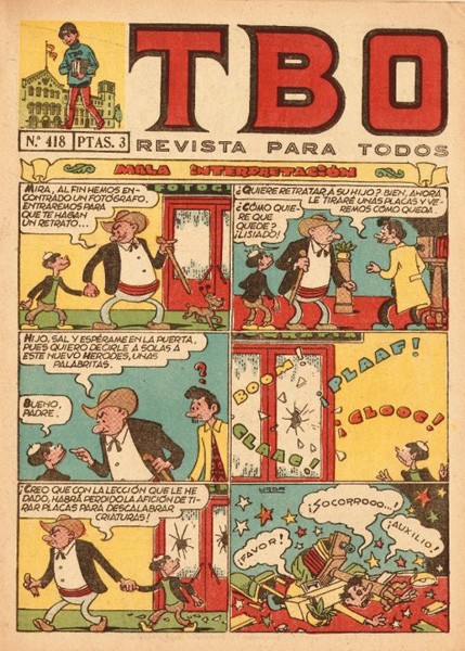 Revista d'historietes grapada de 16 pàgines interiors en blanc i negre i en color més cobertes en color que conté una selecció d'historietes d'autors espanyols. Serie de 789 volums i 69 números extraordinaris iniciada el 1952, que reprèn la capçalera TBO