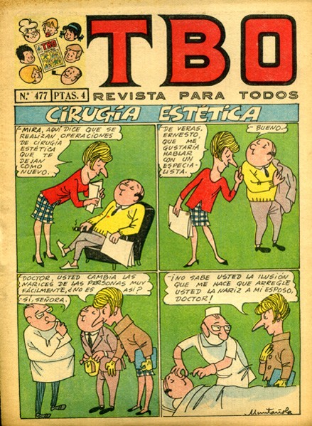 Revista d'historietes grapada de 16 pàgines interiors en blanc i negre i en color més cobertes en color que conté una selecció d'historietes d'autors espanyols. Serie de 789 volums i 69 números extraordinaris iniciada el 1952, que reprèn la capçalera TBO