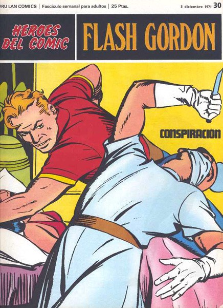 Revista d'historieta grapada de 20 pàgines interiors en color més cobertes que conté la traducció de les pàgines dominicals de la sèrie americana Flash Gordon publicades als EUA per King Features Syndicate editada a partir de 1971 per Burulan. Col·lecció de 128 volums numerats de l'1 al 108 i de l'01 al 020.