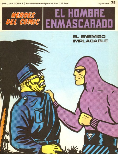Revista d'historieta grapada de 20 pàgines interiors en color més cobertes que conté la traducció de les pàgines dominicals i les tires diàries de la sèrie americana The Phantom publicades als EUA per King Features Syndicate editada en 1971 per BuruLan SA en la seva col·lecció "Herois del còmic". Col·lecció de 96 volums numerats de l'1 al 84 i del 01 al 012.