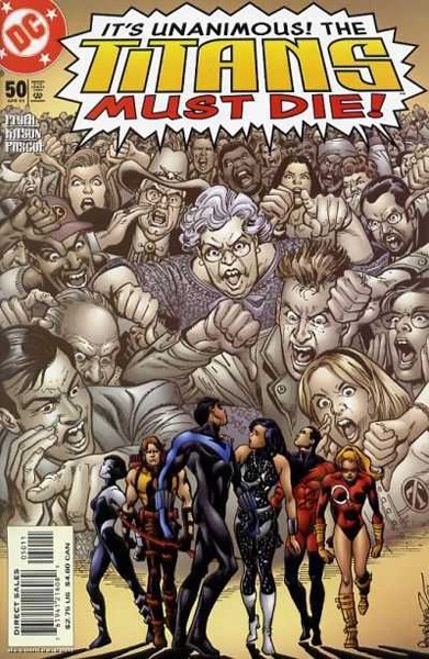 Titans (Volume 1)Members: Nightwing, Donna Troy, Arsenal, The Flash (III), Tempest, Cyborg, Starfire (II), Argent, Damage, and Jesse Quick.NOTE: Indicia titled as "The Titans".Climactic final issue! If Earth is to survive, the Titans must destroy the Consensus and the alien creature that gives the C...