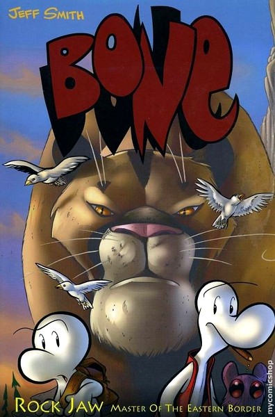 In this fifth volume of the BONE saga, Fone and Smiley Bone strike out into the wilderness to return a lost rat creature cub to the mountains. It doesn't take long before they run smack into Rock Jaw, "Master of the Eastern Border," an enormous mountain lion with a none-too-friendly disposition. Lif...
