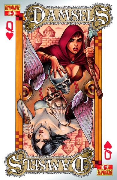 Damsels is an ongoing comic series from Dynamite Entertainment that began publication in 2012, written by John Reppion and Leah Moore (frequent collaborators as well as wedded couple) with art by the relatively unknown Aneke. The concept of the series is similar to that of several successful contemporary comics including Fables and Grimm Fairy Tales in that it uses characters from fairy tales as its main cast but like those books it has its own different take. Damsels proved to be a quick success as after only the second issue was released, a spin-off was already announced to begin in 2013 written by Matthew Sturges (although so far it is still without a title).