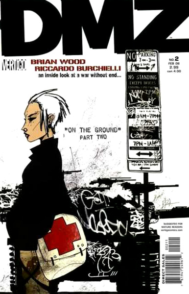Follow the adventures of Matty Roth as he desperately tries to escape a war-torn New York City. Will he get the scoop or will he get killed? America is in the midst of a second civil war. Manhattan island has become the demilitarized zone between the Free States of America and the United States of America. In a series of single and multi-issue volumes we are introduced to fledgling journalist Matty Roth and the host of characters he interacts with during his stay in the DMZ. Roth is the glue that holds the narrative together but we learn the stories and perspectives of many who live in the shattered city. Behind them all is the conflict between the FSA, USA, and other factions as the country attempts to end the civil war.