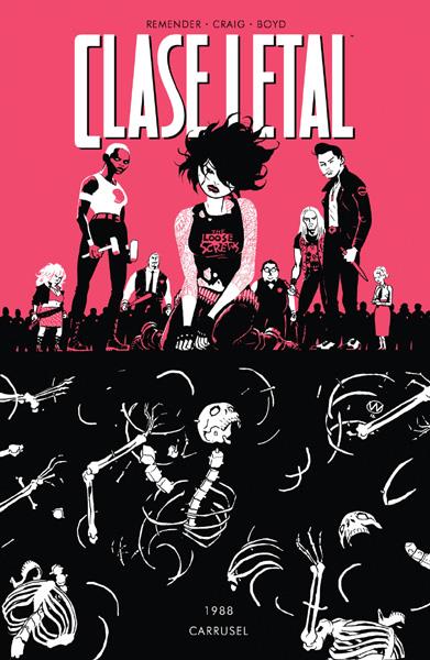 Libro de historietas encuadernado en rústica de 128 páginas interiores en color más cubiertas que contiene la traducción de los comic books originales Deadly Class números 22 al 26 publicados en USA en 2015 por Image Comics. Serie abierta.