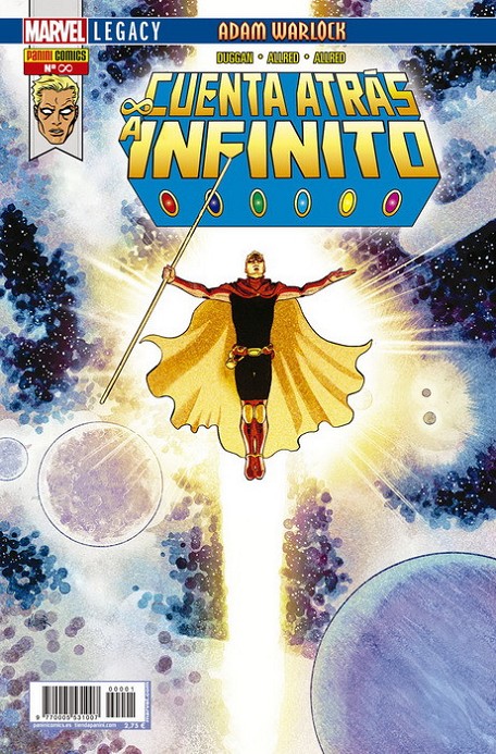 Cuaderno de historietas grapado de 32 páginas interiores en color más cubiertasque contiene la traducción del comic book original Infinity Countdown Adam Warlock publicado en USA por Marvel Comics. Volumen único.