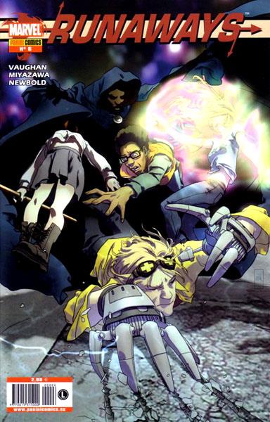 Cuaderno de historietas grapado de 48 páginas interiores en color más cubiertas que contiene la traducción de los comic books originales Runaways números 11 y 12 publicados en USA por Marvel Comics.