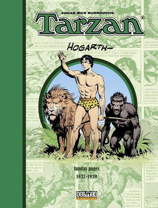 Dolmen Editorial, publica el primer volumen de Tarzan dedicado a presentar las páginas dominicales de Burne Hogarth que le serían encargadas tras la decisión por parte de Harold Foster de dejar su producción de Tarzan para dedicarse a Principe Valiente. La editorial creó un conncurso para ver qué dibujante sustitía el genial Harold Foster, y el ganador fur Burne Hoharth que dibujó la que sería la siguiente página dominical a la última de Foster con un virtuosismo tal que de no estar firmada por él, los lectores no se hubieran percatado del cambio de dibujante. El estilo de Hogrth en este primer volumen permanece parecido durante el primer tomo, empezando a intruoducir las variaciones de su genial estilo a partir del tomo dos y aún habrá variaciones más iportantes más adelante. Los tomos de esta colección tienen una predominancia del color verde para las portadas y páginas de textos en el interior, muy apropiado para representar el color de la selva de Tarzan. Encuadernado en cartoné y presentadas las historias en papel de alto gramaje y con la coloración original, éste es una muy buena colección para conocer esta obra. (texto de Mariano Bayona).