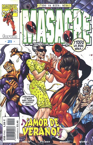 Cuaderno de historietas grapado de 24 páginas interiores en color más cubiertas que contiene la traducción del comic book original Deadpool volume 3 número 20 publicado por Marvel Comics. Serie de 31 volúmenes.La serie regular dedicada a Wade Wilson, alias Masacre, también conocido como el mercenari...