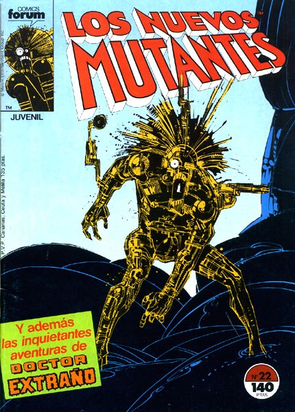 Cuaderno de historietas grapado de 32 páginas interiores en color más cubiertas que contiene la traducción de los comic books originales The New Mutants número 21 y Doctor Strange volumen 2 número 58 publicados en USA por Marvel Comics. Serie de 65 volúmenes.