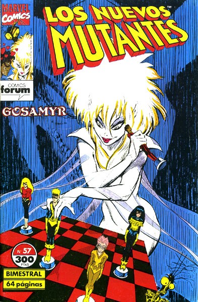 Cuaderno de historietas grapado de 64 páginas interiores en color más cubiertas que contiene la traducción de los comic books originales The New Mutants números 67 al 69 publicados en USA por Marvel Comics. Serie de 65 volúmenes.
