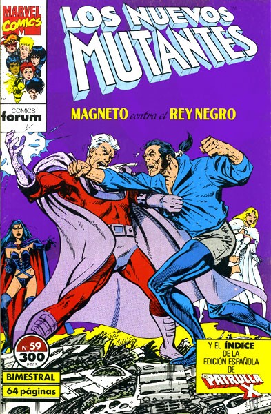 Cuaderno de historietas grapado de 64 páginas interiores en color más cubiertas que contiene la traducción de los comic books originales The New Mutants números 75 al 77 publicados en USA por Marvel Comics. Serie de 65 volúmenes.